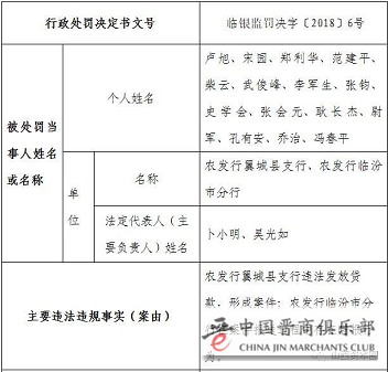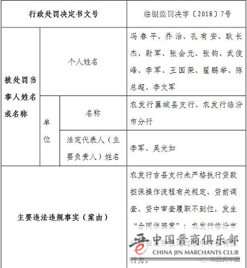 今年4月,山西银监局官网对外披露两则临汾银监分局2018年作出的关于农发行临汾市分行、农发行翼城县支行和农发行吉县支行的行政处罚公告,主因在于农发行翼城县支行违法发放贷款,农发行吉县支行审查不严,形成案件,而农发行临汾市分行在案件报送过程中存在瞒报行为,其中农发行临汾市分行合计被罚100万元,农发行翼城县支行被罚250万元,农发行吉县支行被罚50万元,共计20人处罚。值得注意的是,山西银监局当年“开年第一罚”也是给予了农发行系统的阳曲县支行,当时被罚85万元。