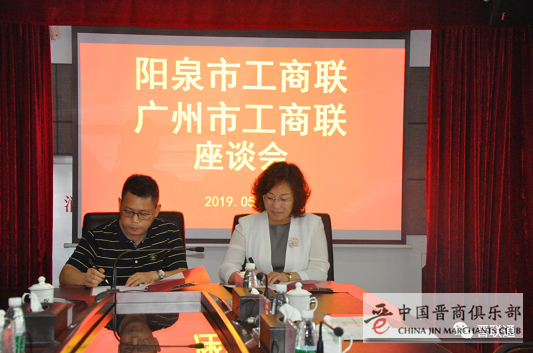 在广州市工商联座谈会上,赵素卿介绍了阳泉市委、市政府开展“贴心行动”的重要意义,并将阳泉地理经济人文以“1234567”形象加以说明,殷切希望广州市工商联大力支持和帮助广州阳泉企业商会的成立工作。对阳泉市工商联服务经济工作方面存在的短板,考察组一行虚心向广州市工商联取经学习。为进一步推动阳泉市与广州市的交流与合作,阳泉市工商联主席赵素卿、广州市工商联党组副书记、副主席尹宏亮分别代表双方工商联在友好协议书上签字,正式缔结为友好单位。