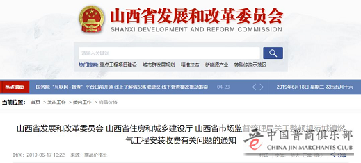 6月17日,山西省发展和改革委员会、山西省住房和城乡建设厅、山西省市场监督管理局发布《关于整顿规范城镇燃气工程安装收费有关问题的通知》,规范山西省城镇燃气工程安装收费行为,降低偏高的收费标准,促进燃气工程安装市场公平竞争。就有关问题通知如下。