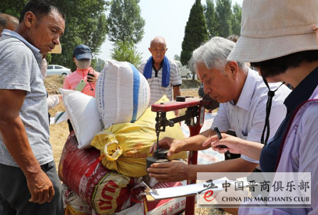 图为郭天财教授(右二)等专家正在对收割的小麦称重。