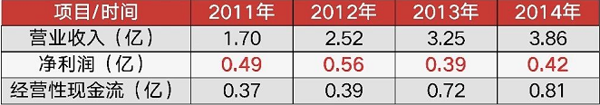 上市前,暴风的生存状况只能用维持生计来形容。2011到2014年,暴风的营收增长了127.06%,但净利润却下降了14.29%,且丝毫看不出利润增长的迹象。