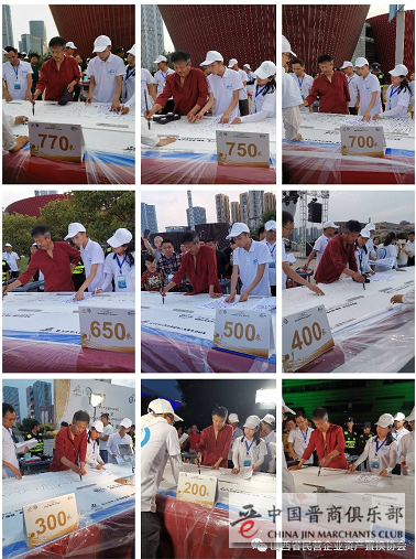 2019年6月23日,太原长风商务区山西大剧院东广场,多家省内外媒体和热心市民见证了一次书法界的传奇——山西省民营企业资产置换协会(中国晋商俱乐部联合发起机构)常务副会长、山西伟厦广业房地产开发有限公司董事长杨拴明,经过15小时20分的不停书写,刷新了814.269平方米一笔空心字,成功打破705.39平方米的一笔空心字世界吉尼斯记录。在第二届全国青年运动会即将在省城太原启幕之际,该项活动为二青会献上了一份厚礼。