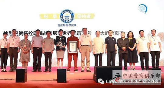 稍后,世界吉尼斯纪录认证官现场为杨拴明颁发了吉尼斯记录证书。