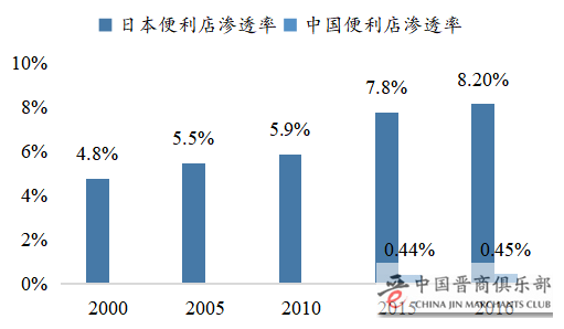 相对成熟的日本便利店市场而言,中国便利店渗透率依然差距很大。