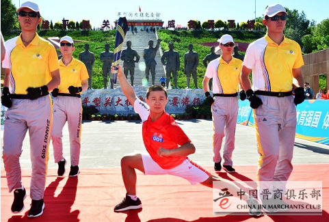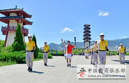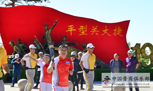 6月30日,在灵丘县博物馆广场,火炬手陈晋峰正在传递火炬。山西日报通讯员王中勋摄
