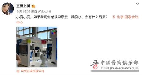 李彦宏显然有些措手不及,竟没有反抗,生生让人浇完了一整瓶水。由于整个过程过于流畅,现场观众开始还以为是一个精心设计的技术环节。但李彦宏的表情变得不悦,他飚了一句英文:“What’s your problem?”