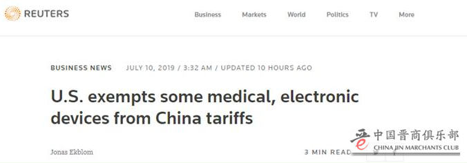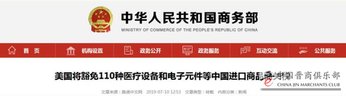 环球网记者注意到,中国商务部网站7月10日也转发了关于“美国将豁免110种医疗设备和电子元件等中国进口商品高关税”的相关报道。