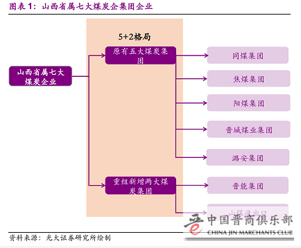 在山西煤炭行业,煤炭资源主要集中在省属国有企业,并且呈现“5+2” 大型煤炭集团的格局。同煤集团、山西焦煤、潞安集团、阳煤集团、晋煤集团为传统的五大煤炭集团,而山煤进出口、晋能集团属于资源重组新增的两大集团,这七家企业被统称为“山西省属七大煤炭集团”。