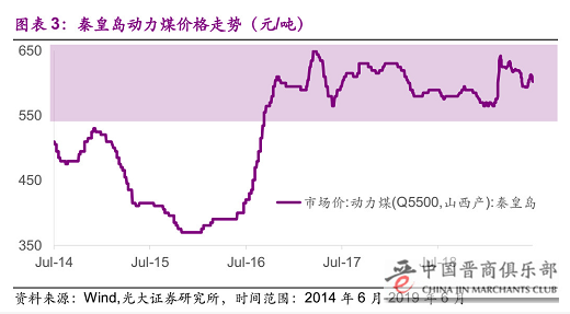 行业供给侧改革推行后,煤炭价格回升,煤炭企业整体盈利回暖。煤炭行业的产品价格自2016 年以来回升,2017 年后也维持基本稳定。动力煤价格2017年以来亦维持中高位运行。从全局来看,煤炭行业处于供给侧结构性改革后期,行业集中度提高,行业格局基本稳定,并且建立了价格长效机制,供给端格局稳定,对煤炭价格形成较为有力的支撑。随着煤炭供给端有所放松,预计2019年下半年价格中枢可能继续小幅回落,在500元至570元区间。