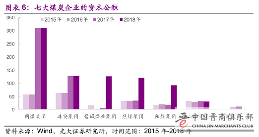 资本公积大幅增值的背后是自上而下的资产重估政策。根据《山西省财政厅山西省国资委山西省国土厅关于在国有煤炭等省属企业开展采矿权、土地等国有资产价值重估的工作方案》 (晋财资[2016]101号),按照国家有关法律法规及规章制度规定、山西综改试验区“先行先试”政策,省财政厅、国资委等机构按照市场化原则,统一对采矿权和原授权经营土地使用权进行了价值重估。这一动作,使得企业的无形资产大幅上升,尤其明显的是焦煤集团、晋城煤业集团、同煤集团。