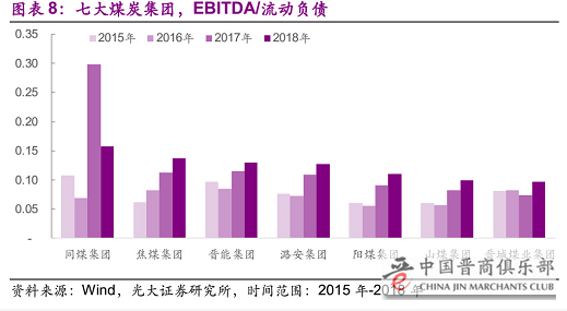 从EBITDA/流动负债的角度来看,部分煤炭企业的偿债能力有所上升,但并未明显改善。