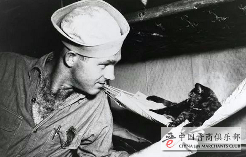 二战中的“猫舰员”:萌只是表象,人家可是有战斗力的。猫上船,最早的目的同样是为了防御鼠害。随着军舰航程的增大,猫的很多特性被发现很适合海上生活,一方面可以有效对付对木质船舶危害很大的老鼠;另一方面,由于猫特有的神秘和温顺的特征,既是绝佳的宠物,又为当时很多看似迷信的海上传统提供了发挥的空间。在西方航海文化中,许多人认为黑猫可以预知吉凶。