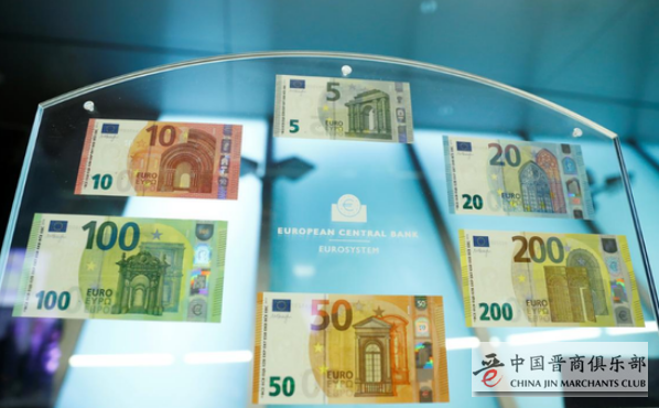 资料图片:2018年9月,德国法兰克福,欧洲央行总部展示的欧元纸币。