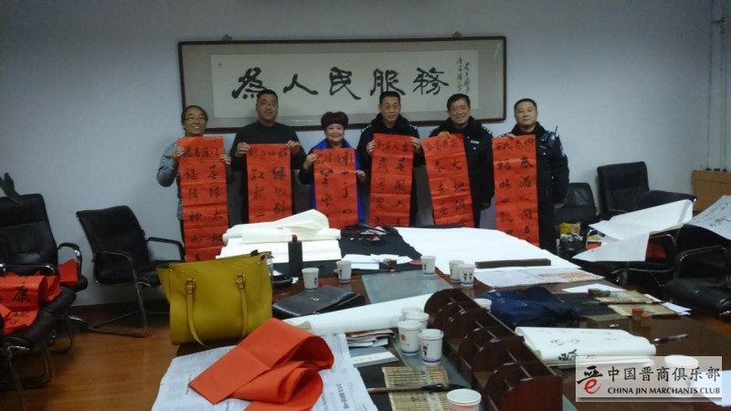 中国晋商俱乐部副秘书长,山西田园诗歌文化传媒有限公司董事长关小爱,山西田园诗歌书画院院长,一级书法家耿跃,太原市文联授予优秀艺术家荣誉称号的王书民,中国食品杂志社食品界市场部主任张卫平以及市民代表一行七人到太原市公安局交警杏花岭大队进行了送春联慰问活动。太原市公安局交警杏花岭大队大队长高文晋,教导员魏志清,中队长李斌以及杏花岭大队指挥中心的警员们进行了文化交流和警民情感互动座谈会。