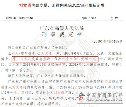 近日,一份内幕交易、泄露内幕信息的刑事裁定书,将曾任广东省金融办主任刘文通曾经的内幕交易行为曝光出来。当年广晟有色借壳ST聚酯,造就从2元左右暴涨到101元的大牛股,刘文通当时任广东省国资委副主任,获取内幕暴赚。