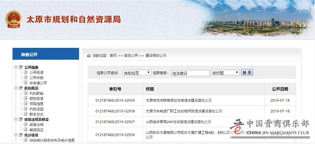 7月18日,太原市规划和自然资源局官网公示了4家房地产开发有限公司违法建设查处公示,共计罚款2910727.35元。它们分别为: