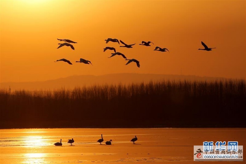 1月19日,成群的大天鹅在山西平陆黄河湿地栖息。近日,随着越冬的野生大天鹅陆续到来,山西平陆黄河湿地迎来每年大天鹅的最佳观赏期。