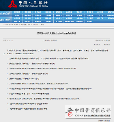 7月20日,国务院金融稳定发展委员会办公室宣布了一系列金融业进一步对外开放的政策措施。