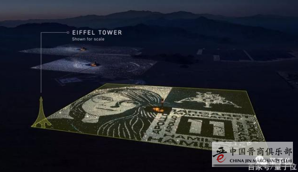 白天这里用镜子反射日光,将它们聚焦在发电厂中央的锅炉,利用产生的高温来发电。晚上8点07分,工程师们用镜子追踪月光,摆出了玛格丽特头像,以及她的名字和阿波罗11号的字样。