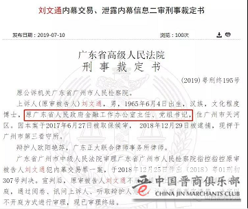 近日,一份内幕交易、泄露内幕信息的刑事裁定书,将曾任广东省金融办主任刘文通曾经的内幕交易行为曝光出来。当年广晟有色借壳ST聚酯,造就从2元左右暴涨到101元的大牛股,刘文通当时任广东省国资委副主任,获取内幕暴赚。
