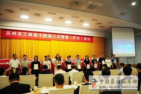 7月30日下午,苏州市工商联十四届三次常委(扩大)会议在苏州市会议中心召开。市政协副主席、市工商联主席李赞,市委统战部副部长、市工商联党组书记谢正才,市工商联副主席周显芳,市工商联企业家副主席、市总商会副会长及市委统战部、市工商联机关同志,各市、区委统战部、工商联相关负责同志,市民营企业50强代表,各所属商会负责同志300多位代表参加此次会议。苏州市山西商会(中国晋商俱乐部联合发起机构)常务副会长尹宏宇受张新会长委托,和秘书处人员参加了会议。
