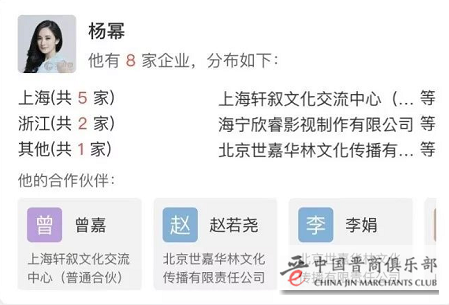 天眼查数据显示,目前杨幂旗下共8家公司,包括上海杨幂文化交流中心、上海杨幂文化传媒中心等,均为影视文化类公司,其中5家公司的注册地在上海,2家公司在浙江,剩下1家在北京。杨幂担任着5家公司的法人,8家公司的股东和5家公司的高管,实际控制的公司共6家。