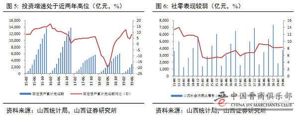 四是,促进新型消费。中美贸易摩擦以来,国家多次重磅会议均强调“要重视提振内需,重视消费的积极作用”,同时出台多项政策意欲提升国内消费。从国家层面来看,上半年消费已成为拉动经济增长的重要手段。而山西省内上半年消费弱于去年同期,因此下半年要继续发力提振山西省内消费,从提升消费者消费意愿与提振消费者可支配收入两方面入手,把握将旅游业作为山西省战略性支柱产业的契机,促进旅游业收入的继续增长,促进新业态、新模式消费的快速增长。