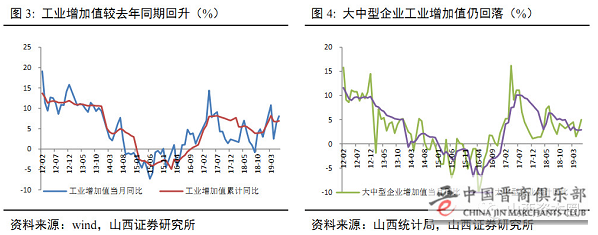 工业增速较快,非煤工业为工业增长主动力。上半年全省工业增加值同比6.9%,较2018年全年超出2.8pct,较全国同期超出0.9pct,工业增加值增速仍处于本轮经济周期高位。分行业看,上半年全省采矿业增加值同比6.3%,制造业增加值同比7.5%,电力热力燃气业增加值同比8.7%。分企业规模看,上半年大中型企业增加值累计同比2.9%,低于全部规上增加值增速4.0pct,依然处于下降通道。非煤工业是工业增长的主动力。全省规模以上工业中,煤炭工业增加值同比增长6.0%,非煤工业增长8.0%,非煤快于煤炭2.0pct,对工业增长的贡献率达到55.6%。工业新动能较快成长。制造业尤其是装备制造业增势较好。全省制造业增加值增长7.5%,其中装备制造业增长9.3%,均明显快于规上工业增速。装备制造业中,汽车制造业增加值增长29%,新能源装备制造业增长18.9%。