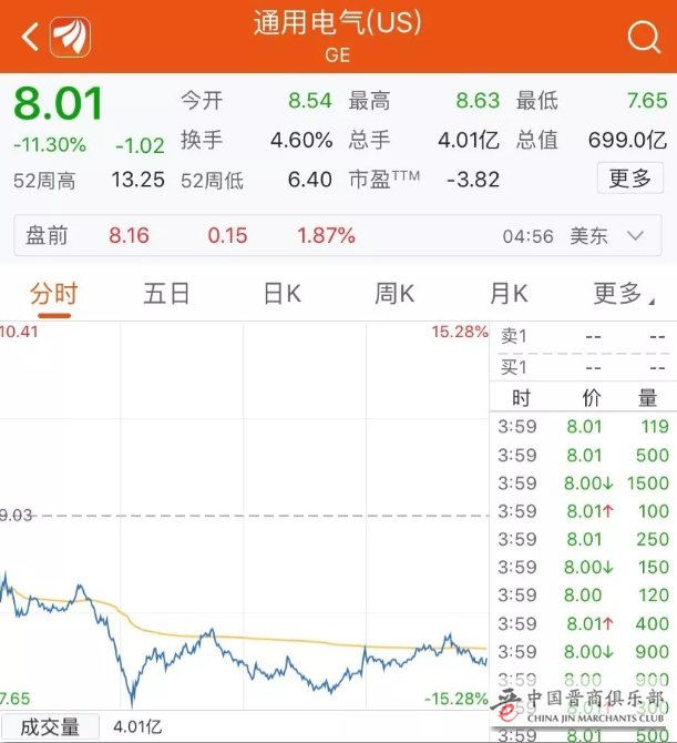 受此影响,周四GE股价开盘便下挫,盘中一度跌逾15%,最终收跌11.3%,创11年来单日最大跌幅。市值一天蒸发89亿美元,折合人民币626亿元。