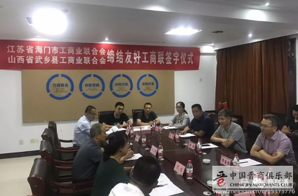 8月29日下午,武乡县工商联与江苏省海门市工商联签订友好商会协议,确立友好商会关系。