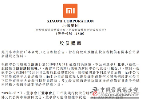 小米集团在公告中表示,在互联网商业模式及“智能手机+AIoT双引擎”策略的推动下,小米集团以股份购回表达对现时及长期业务前景充满信心。本公司将继续提供“感动人心,价格厚道”的产品,相信该价值定位在现时市场状况下会更具竞争力。