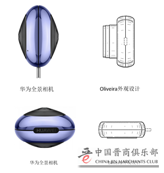 ▲Oliveira外观设计专利和华为Envizion360全景相机摄像头对比