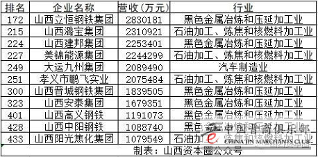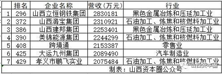 (入围“民企500强”榜单山西企业)