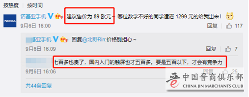 价格更是亲民,诺基亚手机官方统一回复称,“建议售价为89欧元”,若按最新的欧元和人民币的汇率计算,价格为697.76元人民币,售价不到700元。