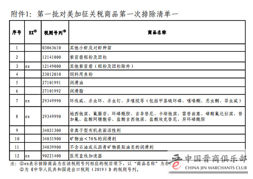 根据《国务院关税税则委员会关于试行开展对美加征关税商品排除工作的公告》(税委会公告[2019]2号),经国务院批准,国务院关税税则委员会11日公布第一批对美加征关税商品第一次排除清单,对第一批对美加征关税商品,第一次排除部分商品,自2019年9月17日起实施。