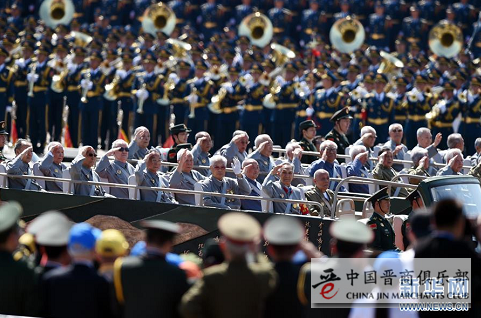 2015年9月3日,抗战老兵乘车方队通过天安门广场。新华社记者 王定昶摄