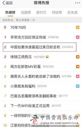 消息公布后,立刻引发网友热议,并一度登上微博热搜榜第二名。部分网友表示“有我的一份功劳”;还有一些网友称“毕竟人多快递业也发达”;少部分网友则表示“由此造成的塑料垃圾也很多”。