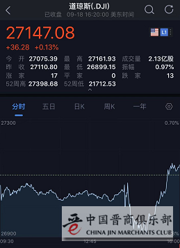 北京时间19日凌晨收盘,美股三大股指收盘涨跌不一,道指涨0.14%,纳指跌0.11%,标普500涨0.03%。银行股普遍上涨、摩根大通、花旗涨近1%。