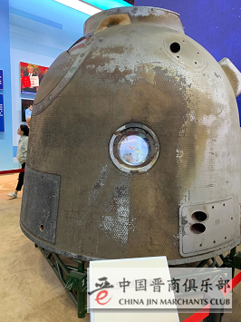 现场展出的“神州一号”无人试验飞船返回舱,如临其境。