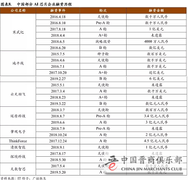 2.AI算法公司。向上游拓展研发基于自身业务的终端AI芯片。这些公司大部分成立于 2012 年后,自身业务已经初具规模,通过研发芯片配合算法,使得其在产品优化上具有主导权,并节省委外业务的成本,有利于与现有的客户加深合作;