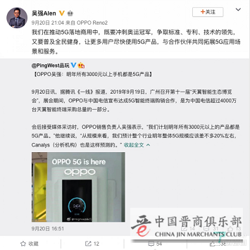 近日,OPPO高管吴强在电信天翼展上透露的消息,多少算是回应了外界的疑问:“OPPO计划明年所有3000元以上的产品都是5G产品。希望在推动5G落地商用中,既要冲刺奥运冠军,又要普及全民健身。”