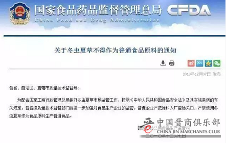 2010 年,国家质检总局加入进来,正式发布了《关于冬虫夏草不得作为普通食品原料的通知》。