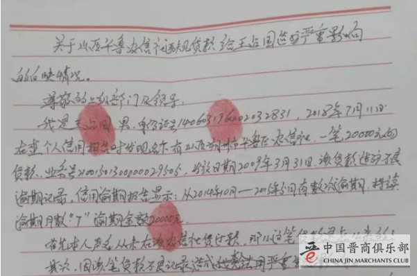 2018年7月,在查个人征信时发现,其名下有一笔2万元的贷款已逾期十年未还,不良征信记录至今没有存在。这让从未办理任何贷款业务的朔州平鲁区高石庄村村民王占国震惊不已。一年来,几十次联系该笔贷款的发放机构朔州市平鲁区农村信用合作联社凤凰城信用社,原负责人邱主任称,该笔贷款确实不是王占国本人办理的,并称:款不是你贷的,钱不用你还,会想办法在2019年年底,把贷款的本息处理掉。