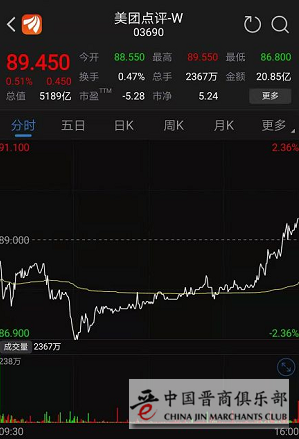 10月9日,美团点评收涨0.51%,股价连续两日创出新高,市值已达5189亿港元。而此前在10月8日,美团点评公司市值突破5000亿元,仅次于阿里巴巴和腾讯。
