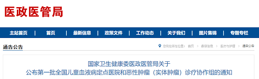 近日,国家卫生健康委医政医管局公布首批全国儿童血液病定点医院和恶性肿瘤(实体肿瘤)诊疗协作组名单。