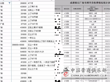 下图为上海校区要求退费的学员自发制作的学员付款汇总表格