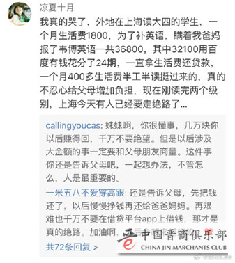 还有学员回忆,报名时课程顾问告诉他要用京东白条付款,自己当时也不是很清楚,所以就稀里糊涂地按着课程顾问的说法来做了。据其所知,很多学员都办了分期付款,“10个里起码有8个。大家在韦博英语课程顾问的引导下,分别在京东白条、招联、有钱花等贷款平台办了贷款。目前,虽然已经知道韦博英语发生了一些问题,但担心影响到征信,学员们大多不敢不还。”
