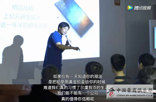 我今天创办小米,我不想做一个坑人的人,而且我也不喜欢把稻草卖成金条的人,我们不需要。