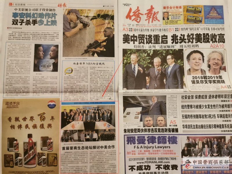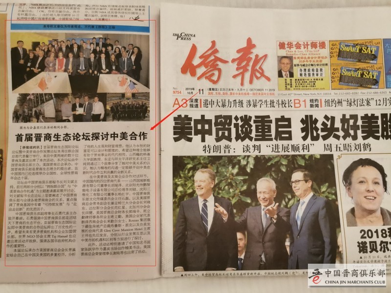 核心提示:2019年10月8日,由中国晋商俱乐部主办、美国晋商总会承办的2019首届晋商生态国际论坛在联合国大厦隆重召开。10月11日,美国《侨报》对本届晋商国际论坛活动进行报道。