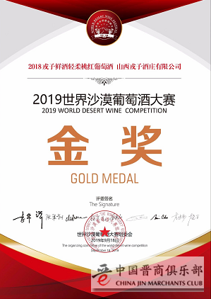 2019世界沙漠葡萄酒大赛在乌海市汉森酒庄举行,本次大赛评委由国际国内专家组成,来自国际、国内的10位评委,分两组对100余款沙漠产区葡萄酒和300余款进口酒、国内其他产区葡萄酒进行了盲品打分,其中2018戎子鲜酒·轻柔桃红葡萄酒荣获金奖。